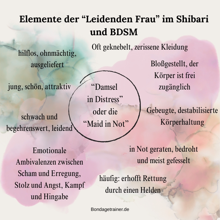 Es ist also nicht so, dass die “Maid in Not” eine neue Erfindung von BDSMern oder ein reines Shibari- Phänomen wäre. Das Motiv ist uralt und findet sich in vielen Kulturen in Themen wie Ohnmacht und Rettung, Gefahr und Begierde sowie zahlreicher Liebeserzählungen wieder.